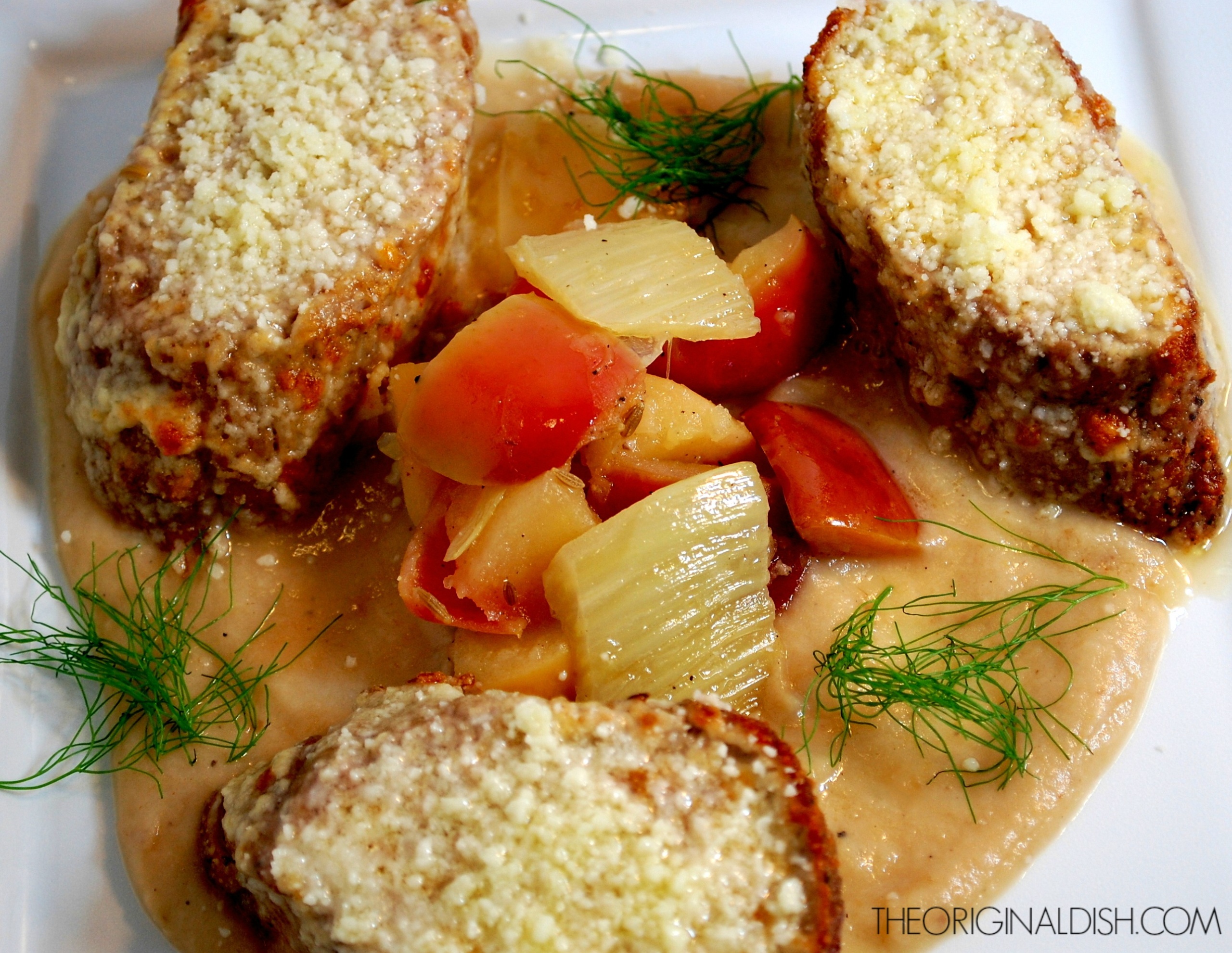 roasted pork tenderloin coated with parmesan cheese and served with whipped apples & fennel