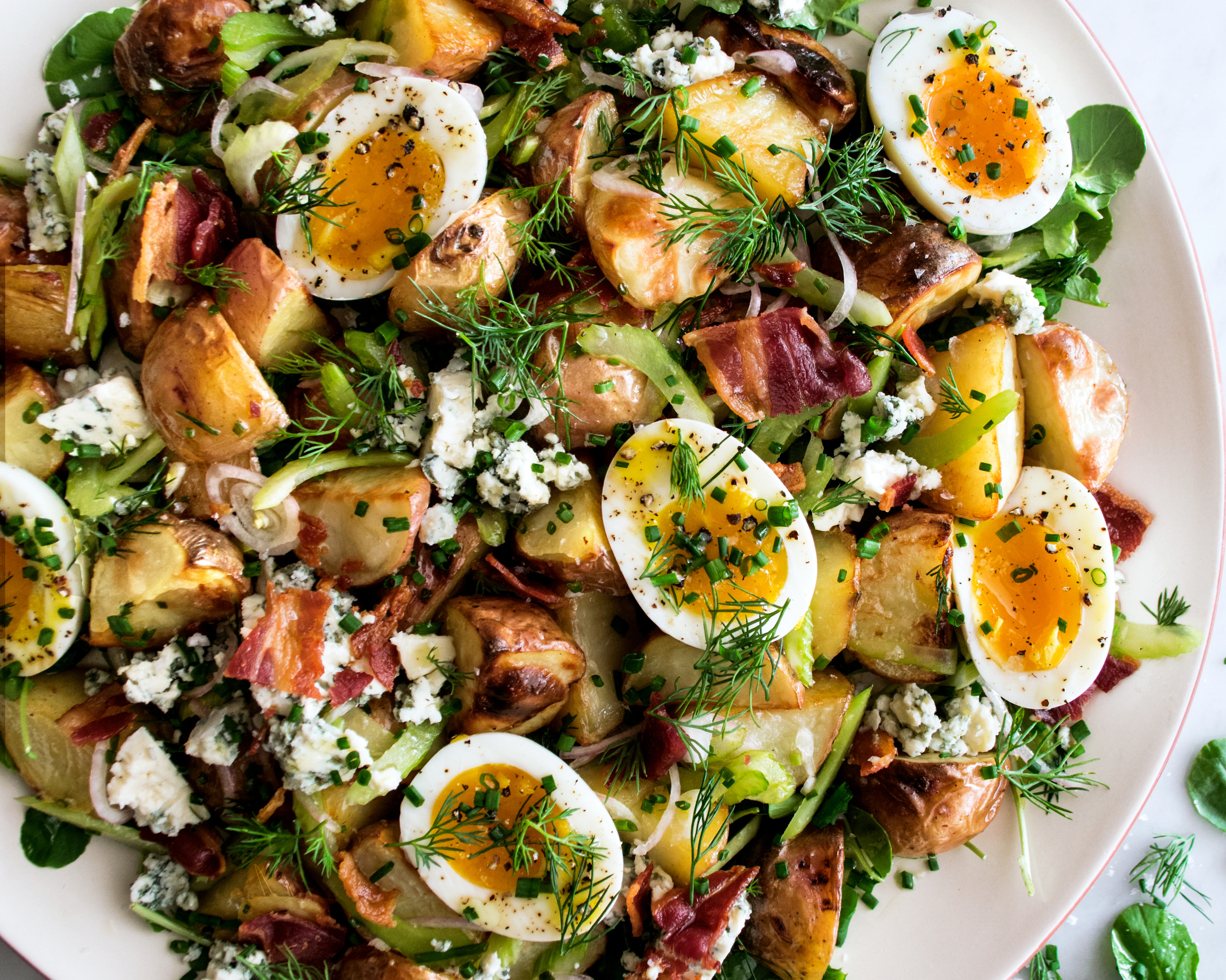 - Spread the date sour cream on a plate. Place the potato wedges on the plate and spoon the olive-date tapenade over the top. Alternatively, serve the date sour cream in a bowl with the tapenade on top and potato wedges alongside.