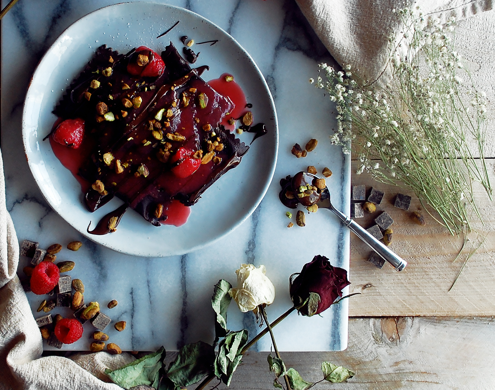 While you can use any chocolate you prefer, I love dark chocolate. The slight bitterness compliments the sweet meringues. Dark chocolate is also extremely good for you, in moderation of course. It contains lots of nutrients and antioxidants that have been proven to improve your health. I occasionally have a couple of squares of dark chocolate at night to satisfy cravings and enjoy all of the health benefits. For my meringues, I melt the chocolate down with butter and a pinch of salt to bring out the flavor even more. I dunk the meringues straight into the chocolate so they are covered about halfway. These beautiful treats are finished with a sprinkle of pistachios, so you know exactly what is inside of them. Enjoy!